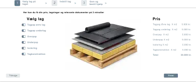 Eksempel: Det lille system, hvor kunden kan konfigurere et tag og få prisen med det samme.