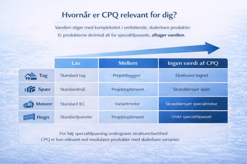 Vi har fx udviklet en konfigurator til international elmotorproduktion med mange parametre og høj indbyrdes afhængighed. Her var CPQ ikke bare relevant — det var nødvendigt.